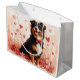 Fira kärlek med denna elegant minimalistisk utformning som på ett bra sätt visar Hund mellan rosa och röd ros, omgiven av pastellhjärtan. Med sina rena, moderna estetiska och mjuka rosa-toner är denna design perfekt för att sprida värme och kärlek på Alla hjärtans dag.