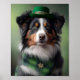 En australian shepherd hund i saint patrick dräkt är en perfekt presentidé för någon som älskar denna hundras.