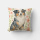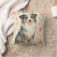 A sweet and cozy throw pillow featuring a charming Australian Shepherd surrounded by soft floral details. Perfect for adding a warm touch to sofas, beds, chairs, and pet-friendly spaces. A thoughtful gift for Australian Shepherd lovers, dog moms, pet owners, and anyone who loves beautiful dog-inspired home decor.
