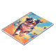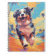 Färgfull levande konstdesign av Australian shepherd på en tropisk strand.