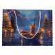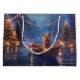 Sätt fart i julhelgens magi med denna vackert detaljerade illustration och visa en stolt hund sitta i en festivt dekorerad båt, som glider över en verklig jul sjö. Väntarna ljus från det närliggande gräs träd avspeglar sig utanför vatten och kastar en varm, feg glöd som förstärker den mysiga ambitionen. Ornament är farliga från båtens sidor, medan de lyser vägen och skapar en scen som fångar det verkliga kärnan i julens värme och glädje. Denna nostalgiska konst ger en aning helgdag magi åt vilket håll som helst, perfekt för dem som vårdar säsongens anda.