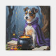 Gå in i en magisk Halloween-kväll med den här vismiska oljemålningen med en vacker valp klädd i en mini-häxkloak, placerad bredvid en bubblningskauldron i en skuggskog. Omgiven av glänsande potioner, gamla stavböcker och tvillingande magiska gnistor är scenen fylld med mysterium och charm. Rik painterly struktur och djupt Halloween-hues skapar en mysigt, angenäm vibe-perfekt för sagessäsongen älskare.