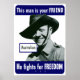 Den här vintagen poster Världskrig två med en leende australisk soldat. Han säger: "Den här mannen är din vän, han kämpar för frihet." Fira American, Australian och WW2 History med denna digitalt återställda vintage krig poster produkter från Krig Is helvetet Store. Vill du ha fler militära produkter och historikprodukter? Checka ut