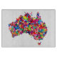 En karta av Australien som göras upp från färgglada fjärilssilhouettes på en vitbakgrund