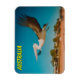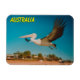 En pelikan som flyger längs stranden på Monkey Mia, Westerna Australien.