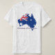 Skissera av en karta av landet av Australien med medborgare som flagga overlayed medföljd av första fodrar av nationalsången. Ord av hyllningssången reporduceds enligt ta copyrightt påkraven av avdelningen av premiärministern och kabinett, framläggas i en tasteful, respectful och värdig aspekt.