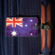 Australiskt flagga bagagemärke, perfekt för dem som kommer från Australien eller reser till Australien på semester. Anpassa baksidan av den här märkrn med ditt namn och adress-information. Designad enbart av Sarah Trett.