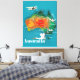 Australien Karta Travel-affisch. Australisk tecknad poster.