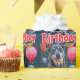 Vi presenterar vårt charmiga hundfödelsedagskort, det perfekta sättet att fira din fyrbenta väns speciella dag! Framsidan på kortet utbrister "Grattis på födelsedagen!" i en lekfull, fantasifull font, som sätter tonen för glädjen inuti.