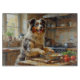 Tillsätt en lekfull och glad ton i ditt kök med denna Australisk terrier-design med en livlig valp som lagar mat i en mysig miljö. Med sin sträva päls, alerta öron och energiska personlighet fångar detta konstverk rasens charm på ett roligt och hjärtvärmande sätt.