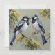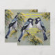 Avbildade på blommande trädgrenar i en oljemålning design är två australiensiska skator.