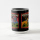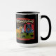 Denna mugg var designad vid North Carolina konstnärer Ann LePere och Susan Phillips som baserades på tidigt - 20 lådor för emballage för jordbruksprodukter för thårhundrade iconic. Den visar röda och blåttnötkreaturhundar - eller heelers - mot Australien Ayers sten med en flock av nötkreatur. Australien nötkreatur förföljer är fastställdt mot ett fält av bumeranger. Texten över: Acceptera inga ersättningar, när intelligens, lojaliteten och drev är avgörande. Den nedanföra texten: Välj ACDEN brännmärker när du behöver en hund som du kan räkna på.