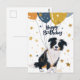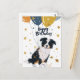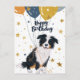 En söt australisk shepherd med födelsedagsballonger önskar Glad födelsedag