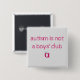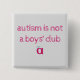 Image är texten i en magentafärgad skissar stilsorten: autism är inte pojke klubb. Nedanfört är texten AWNlogotypen av en magentafärgad lowercase a med blått och en grått sked-formad slända perched överst.