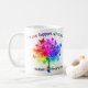 Vackert spektrum träd med autismpussel, fjärilar och hjärtan med budskapet "Kärlek Support Advocate" för att stödja autismmedvetandet.