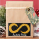 Pridets text med logotyp om oändlighet i guld som tar emot autism.