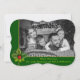 Fotot från färg konverteras automatiskt till en svartvit snyggt när det laddas upp till den moderna designen av rena julkort. Din familjefoto som fyller kortet ansikte bakom en grönt och guld ram som är framhävt med gräs och holly bough. Grund-bandet håller namn och julklapp hälsning i ett mjukt grönt. Guld God jul mönster på ryggen mot mörkens grönt.