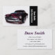 Foto på en snyggt återställde bilen på en professionell, en modern tittar bakgrund med en svart sida pub för ditt företag namn i lodrät text. Använda baksidan för resten av din kontaktinformation. Underbart affärskort för nya och begagnade bilförsäljare, bilreparatörer, detaljister för bilar och servicecentrum för bilar. Titta i min butik efter en mängd olika fordonsrelaterade affärskort.