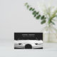 En enkel och snyggt affärskort med svart bakgrund och en lyxbil med silhuett. Anpassa informationen och gör den till din egen. En idealisk utformning för detaljering av bilar, tvättande av bilar, städning bilar, mekaniker, fordonsreparationer, ingenjör, reparation och service av bilmotorer, bildelar osv.