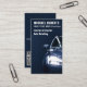 En enkel och snyggt affärskort med marinblå bakgrund och en lyxbil med silhuett. Anpassa QR-koden och -informationen och gör den till en egen. En idealisk utformning för detaljering av bilar, tvättande av bilar, städning bilar, mekaniker, fordonsreparationer, ingenjör, reparation och service av bilmotorer, bildelar osv.