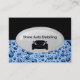 Automotive som detaljerar visitkortsmallen i en coola-två-siddesign med vatten-droppar i bakgrunden och företagets emblem med en bilsymbol. Har presenterats i vårt större format affärskort lagrar som är längre än storleka för extra visuell påverkan. Designad för en tvätta- eller detaljtjänst för bil.