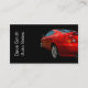 Foto av en snyggt som är blankt använd bil på en professionell, modern tittar bakgrund med utrymme för ditt företag namn i lodrät text. Använda baksidan för resten av din kontaktinformation. Underbart affärskort för nya och begagnade bilförsäljare, bilhandlare, detaljister för bilar och servicecentrum för bilar. Titta i min butik efter en mängd olika fordonsrelaterade affärskort.