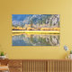 Ett sollandskapsfoto fångar höstens skönhet i ett bergsområde. Bilden har ett stillastående sjö med kristallklart vatten som återspeglar omgivningen. Förgrundsbilden visar en lush fält av guldbruna regn, som gränsar till sjö kant. I bakgrunden ökar ett stort bergsområde, dess sluttningar täcks av en blandning av vintergrönt träd och ett vibrerande höstlöv.
