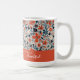 Blommigtar för automatisk matning av matrester, bläck och tackfull kaffe Mugg. Botaniskt höstblommönster under färgfull höstsäsong färg av orange djup grönt och aprikos. Vita skript lyder "Blad and Gratnice".