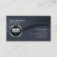 Det här enkla automatiska affärskortet för elegant och professionell har en svart bakgrund. En svartpunktsvåg strömmar från den lämnat till högerna och delar upp kortet i två delar. En cirkulär lämnat av krombilsikonen sitter på den här jacken, medan ditt namn och titel visas på den övre lämnat sidan och din affärs-namn och kontaktuppgifter visas på högerna grund. Designad för företag eller yrken som har samband med transporter, transport, bilar, lastbil, lastbil, landtransporter, sjöfart, logistik, transporter, transporter, bilar, bilar, bilreparationer, bilverkstäder, verkstäder, motorteman.
