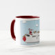 Tomten och hans utmattade renar hittar ett uppmjukande alternativt transportsätt vid denna dekorativa jul mugg av Thingsesque.