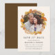 Vår Höst löv sparar datumkortet med din favoritbild av förlovningen som är inramad av en krans av rustik vattenfärg höst löv. Anpassa kortet genom att lägga till namn, datum och plats för bröllop och bröllop webbplats. Foton med platshållare © John Hope Photography: www.flickr.com/people/johnhopephotography och tillhandahålls av Kreativet Commons Attribution 2.0 Generic: https://creativecommons.org/licenses/by/2.0/
