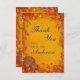 Festiv gult, rött, brunt och orange tonat falltema bröllop tackar dig för kortdesignen med dekorativ höstens färgad löv och vinet gräns med en grupp pumpor i grund hörnet. Bakgrunden har en vacker faux struktur för ett gammalt pappert utseende. Den här designen levereras också på många andra pappra produkter till kostym som uppfyller alla dina behov för bröllop. Följ länken nedan.