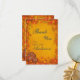 Festiv gult, rött, brunt och orange tonat falltema bröllop tackar dig för kortdesignen med dekorativ höstens färgad löv och vinet gräns med en grupp pumpor i grund hörnet. Bakgrunden har en vacker faux struktur för ett gammalt pappert utseende. Den här designen levereras också på många andra pappra produkter till kostym som uppfyller alla dina behov för bröllop. Följ länken nedan.