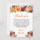 This beautiful and elegant birthday thank you card features watercolor burgundy red and orange flowers with foliage. The text combines handwritten script and serif fonts for a stylish and modern look. This is perfect for an autumn fall rustic birthday.