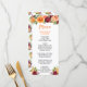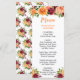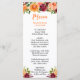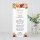 This beautiful and elegant wedding menu features watercolor burgundy red and orange flowers with foliage. The text combines handwritten script and serif fonts for a stylish and modern look. This is perfect for an autumn fall rustic wedding.