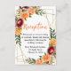 This fun and whimsical wedding reception enclosure card features watercolor burgundy red and orange flowers with foliage on a gold geometric frame. The text combines handwritten script and serif fonts for a stylish and modern look. This is perfect for an autumn fall rustic wedding.