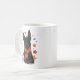 Cozy fall vibes! This cute black dog in a plaid scarf with autumn leaves makes the perfect seasonal mug for coffee or cocoa.