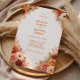 A warm and sophisticated design inspired by autumn tones, featuring rich orange, peach, and blush floral arrangements. The composition is framed by lush botanical elements that create a harmonious and balanced layout. Soft textures and elegant typography enhance the timeless, romantic aesthetic, evoking a cozy and nature-inspired atmosphere.