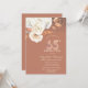 A modern, chic and glamorous invitation with string lights, glitter bokeh ombre, and autumn flowers.