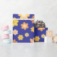 "Höstblommor Midnight Blue Seamless Bröllop Gift Wrapping Papper" visar höstens skönhet med gyllene blommor i varma nyanser, perfekt för att slå in Thanksgiving- eller fall-bröllop presenter.