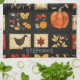 Den här kökshandduken visar en folkkonst quilt-stil-lappverk, fylld med gevärsmotiv och automotiv. I ett rutnät med kvadrater och rektanglar är det pumpor, fallande löv, fåglar, hjärtan och stjärnor, som alla återges i ett mysigt primitivt stil. Den varma jordens färg-palett av orange, brun, guld, svart, röd och grädde skapar en skördeinspirerad estetisk perfekt för höst, Thanksgiving, lantgårdsdécor och land som lever. Med synliga syskon och en homespun charm ger mönster det traditionella, handgjorda utseendet av rustik frälsning samtidigt som man firar årstidens omfattning.