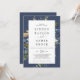 Den här höstens gienery navy fold namn bröllopsinbjudan är perfekt för ett fallbröllop. Den moderna, geologiska designen har marinblått, sage grönt och guld löv med sprit av mörk blått blommor.