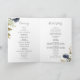 I höstas är det gigantiska bröllopsprogrammet som är uppfällt i marinen perfekt för ett fallbröllop. Den moderna, geologiska designen har marinblått, sage grönt och guld löv med sprit av mörk blått blommor.