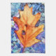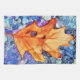 En söt vattenfärg av brunt höst löv mot blå vatten-bakgrund.