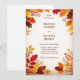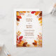 A charming and elegant design featuring a soft neutral background surrounded by rich autumn leaves and delicate berry accents. The warm seasonal palette of orange, red, and golden tones creates a cozy and inviting atmosphere. The botanical composition adds a refined touch, perfect for a timeless and nature-inspired celebration theme.