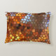 Denna dekorativa accentkudde har en geometrisk abstrakt mönster av fem femsidiga pentagonformade mosaikplattor i briljant höstkudde färg av rött, orange, brun, gult, guld, blått, grått, svart och vitt.