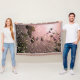 En söt rosa, vit, gult, grönt och svartkonsdesign av solljus som reflekteras på vatten och fallande höst löv.