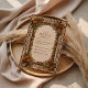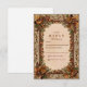 An elegant woodland design featuring golden oak leaves, acorns, and evergreens on a parchment backdrop. The vintage botanical frame and warm earthy palette bring the feeling of fall forests and rustic romance — perfect for autumn weddings or cozy countryside celebrations.