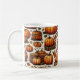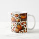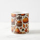 En mysigt och festlig höst mugg med en charmig mönster av pumpor, fat och löv. Perfekt för att njuta av dina favoritdrycker under hetten. Märkre: