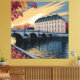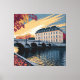 Autumn Riverside European City Illustration Art Canvastryck